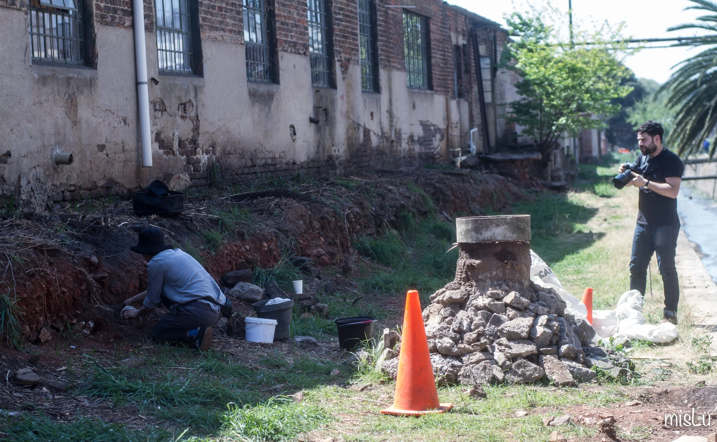 In the center stands a pillar of sand, soil, and clay encasing endangered Soweto Highlands Grassland seeds.