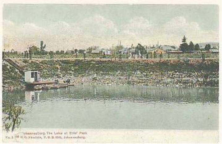 But much of the area was swampy and mushy and facilitated the construction of the lake at Ellis Park. In 1905 the Council named this area as Ellis Park in honour of J.D. Ellis, Chairman of the Parks and Estates Committee. This eye of the Jukskei at Ellis Park was fitted with pipes to supply the town in June 1888. The uncovered lake had a capacity of 98 Ml. In Watershed Town—The History of the Johannesburg City Engineer’s Department it is recorded that by the end of 1894 more reservoirs were constructed, the largest at Ellis Park on the site of the tennis courts.